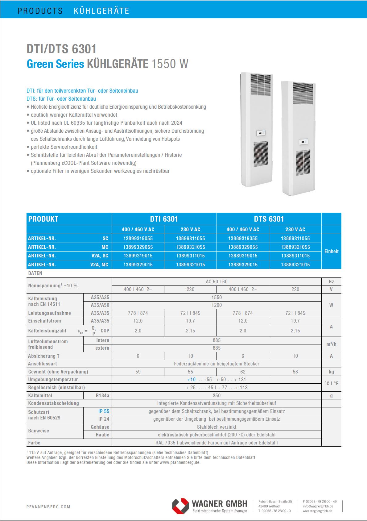 ← Pfannenberg Green Series DTI – DTS 6301 Kühlgeräte Datenblatt